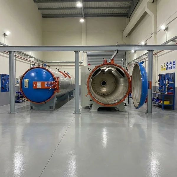 اتوکلاوهای صنعتی با ظرفیتهای مختلف برای پخت تایرهای روکشی با کنترل دقیق دما و فشار.
